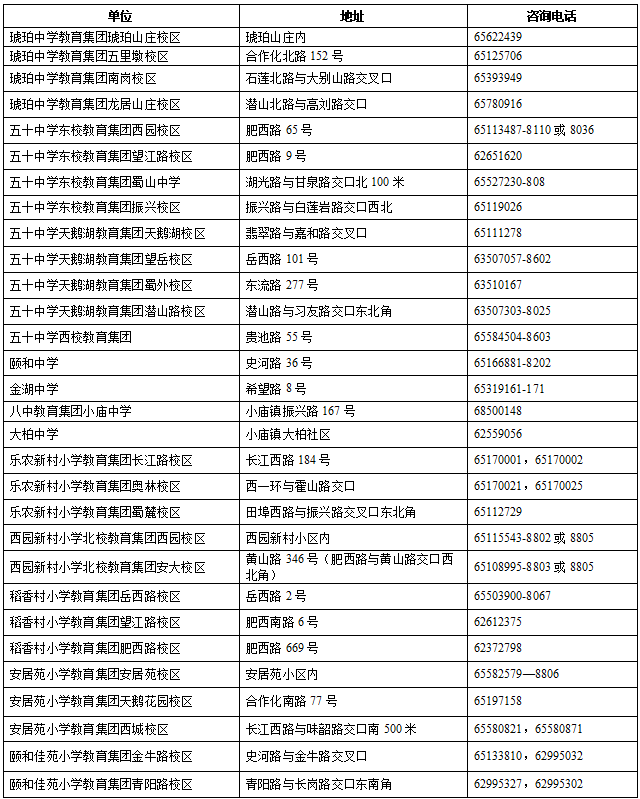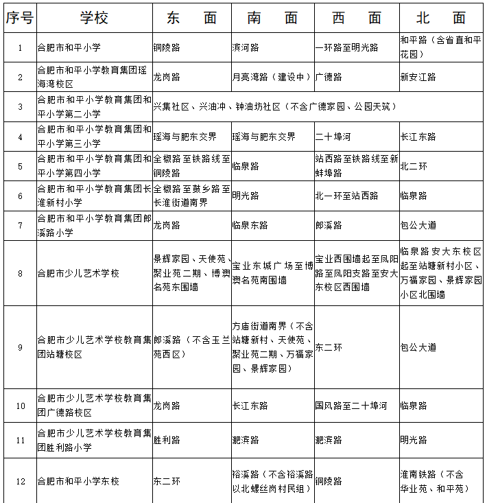 15.合肥实验学校教育集团九珑湾校区:北京路以西,花园大道以北,包河大道以东,繁华大道以南。不含安粮中心、和昌中央城邦等小区。