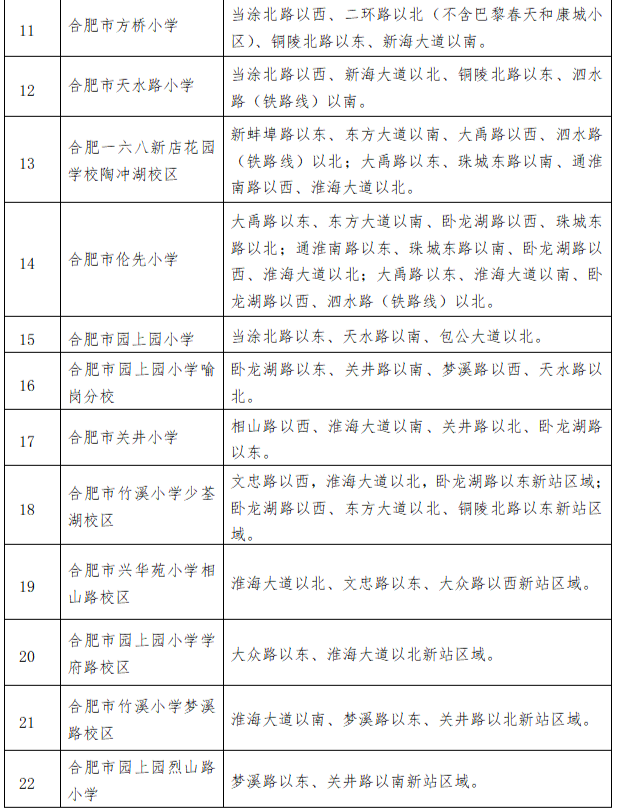 11.合肥市杨林小学:长江西路以南,绕城高速以西,望江西路以北,创新大道以东。