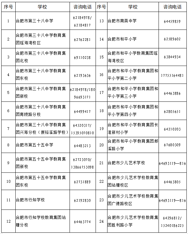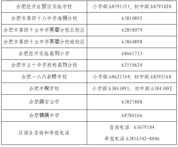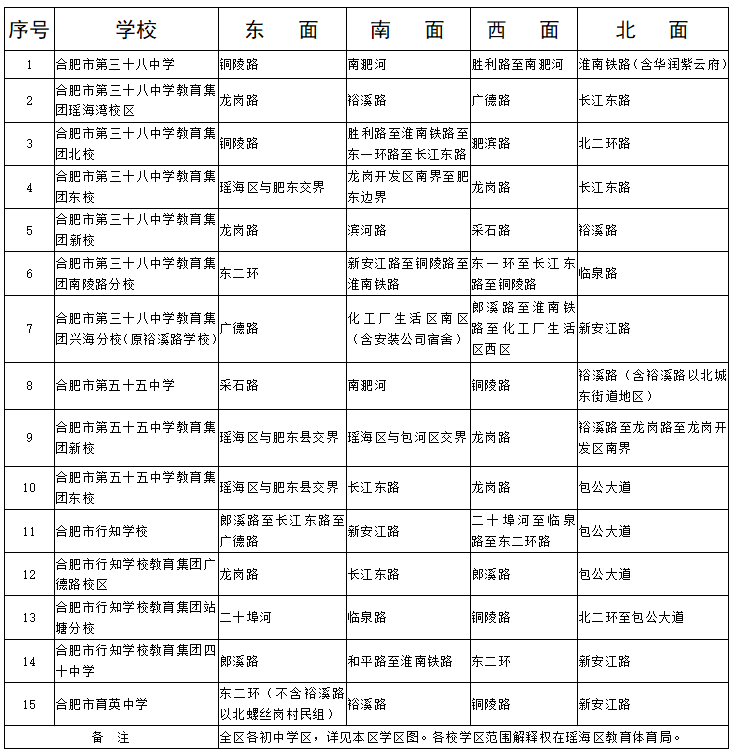 21.合肥市第四十六中学教育集团广东路中学:南淝河路以西,中山路以北,锦绣大道以南,包河大道以东。
