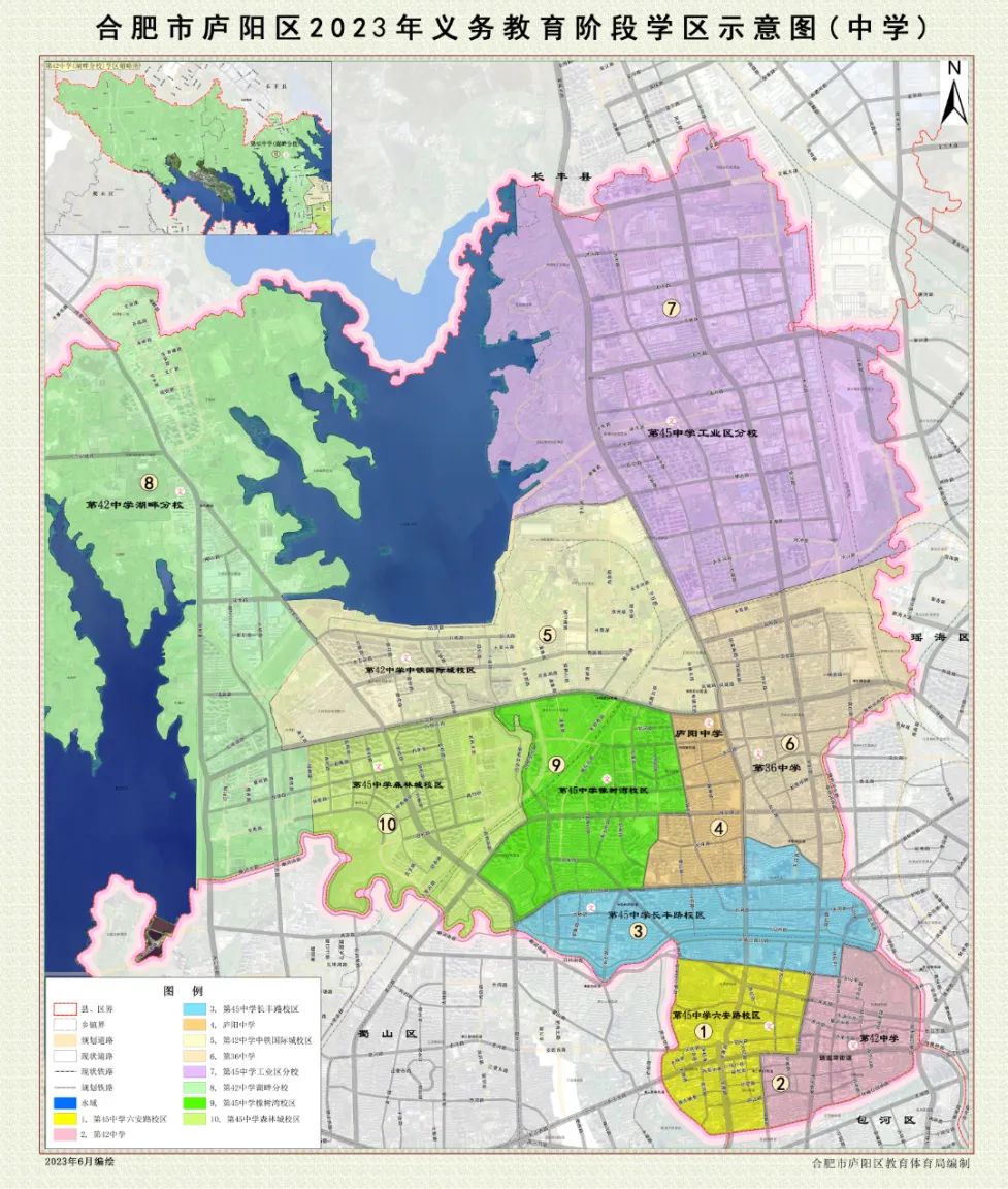 9.合肥市第四十八中学教育集团龙川中学:宿松路以西,高速公路以北,金寨路以东,阊水路以南。