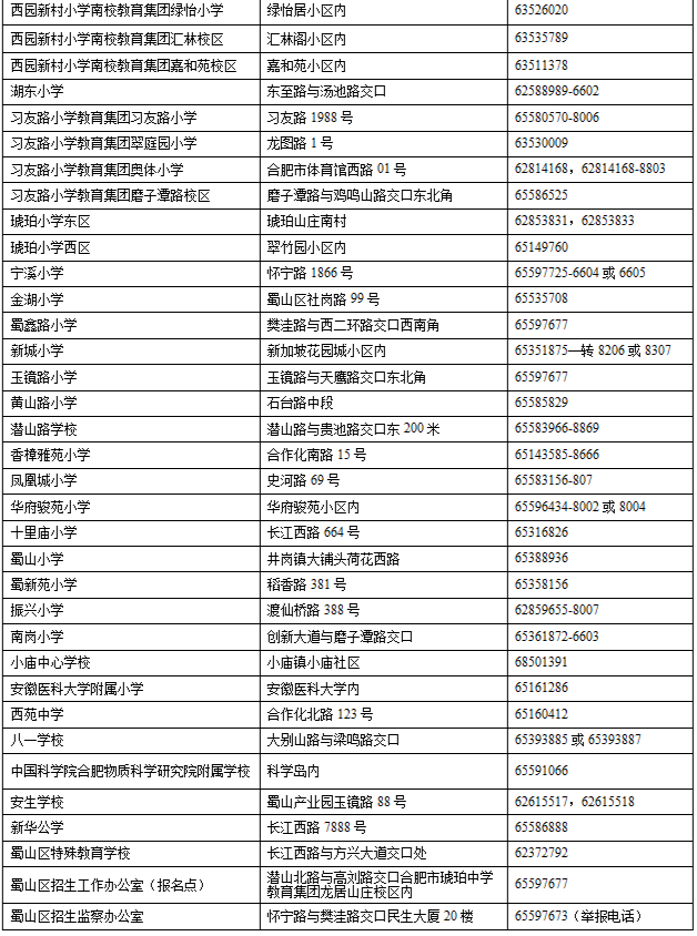 12.合肥高新创新实验小学:长江西路以南,创新大道以西,望江西路以北,石莲路以东。