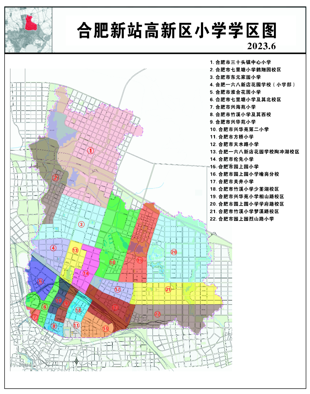 20.合肥实验学校教育集团滨湖校区:包河大道以西,紫云路以北,庐州大道以东,锦绣大道以南。