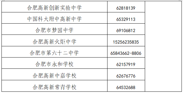 1.中国科大附中高新中学:长江西路以南,西二环路以西,望江西路以北,玉兰大道以东(含和一花园、环东小区高新区部分,不含烟厂宿舍小区)。