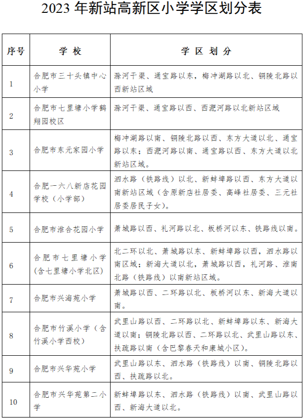 10.合肥市梦园小学教育集团文曲路学校:望江西路以南,永和路以西,肥西县界以北,方兴大道以东。