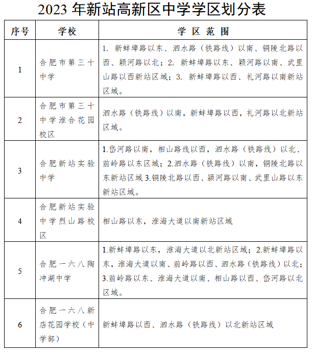 5.合肥高新创新实验中学:长江西路以南,绕城高速以西,望江西路以北,石莲路以东。