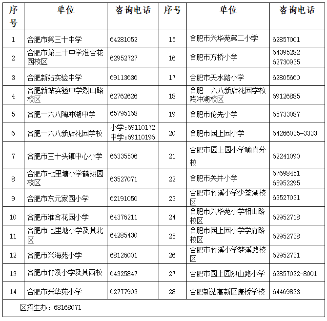 31.合肥实验学校教育集团包河花园校区:天津路以西,繁华大道以北,河北路以东,高速公路以南。(含国开公馆)