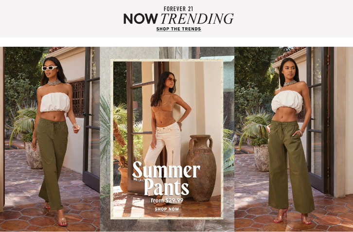 作为一家美国快时尚品牌,Forever 21原本风格多有美式青春阳光风情,但自2021年从线上回归线下后,肉眼可见,整体调性有所改变,尤以裙装类为代表,更像主流审美中的淑女气质,被不少人抨击为“像淘宝爆款”。