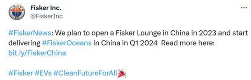 近期,菲斯克公司高层访问中国,并在上海会见了相关人士,讨论在该地区的合作和机会。亨利克·菲斯克表示,他们预计中国将成为未来电动汽车的重要增长市场。6月份,菲斯克在社交媒体账号上宣布计划在中国设立交付中心,并在2024年一季度开始旗舰车型Ocean SUV在华交付。