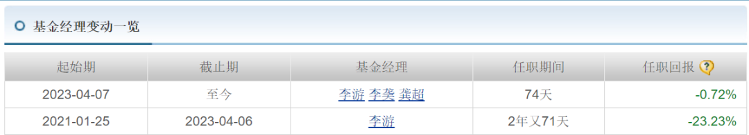 创金合信竞争优势混合原基金经理为李游,任期回报-23.23%,2023年4月7日,同时增聘基金经理李 和龚超。三人共管后,任职回报-0.74%,尚未挽回该产品业绩。