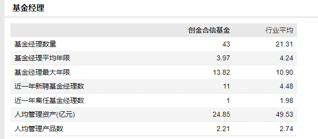 据Wind显示,创金合信基金共有43名基金经理,远高于行业平均的21.31名。近一年来,该公司有1名基金经理离任,新增聘基金经理却达11名。