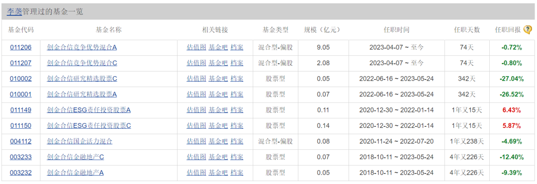 值得注意的是,随着两只产品清盘,目前基金经理李 仅有一只产品在管,即创金合信竞争优势混合。