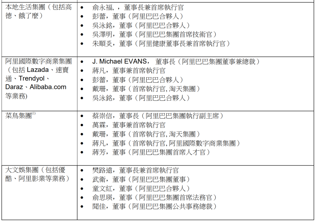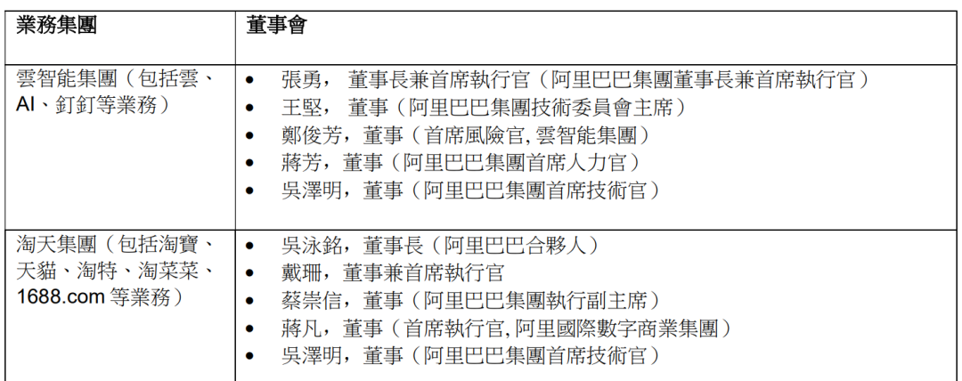 阿里巴巴集团董事会批准的六大业务集团的董事和首席执行官为: