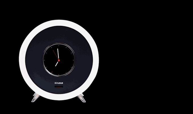Bonjour拥有时尚而紧凑的设计,让它不管是使用还是装饰都完全没有问题,黑白两色是时下最流行的性冷淡风格,镀铬表面看起来柔和又明亮,时尚感upup!更别说还有个能放图片、动画和短信的彩色HD屏幕了!