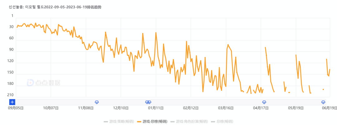 韩版《一念逍遥》iOS畅销榜(数据源:点点数据)
