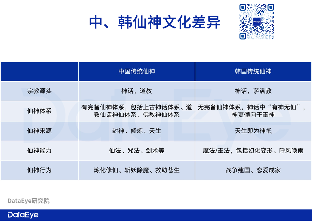 DataEye研究院对比了中国、韩国的仙神文化。