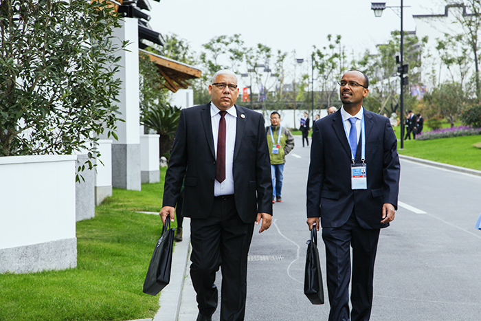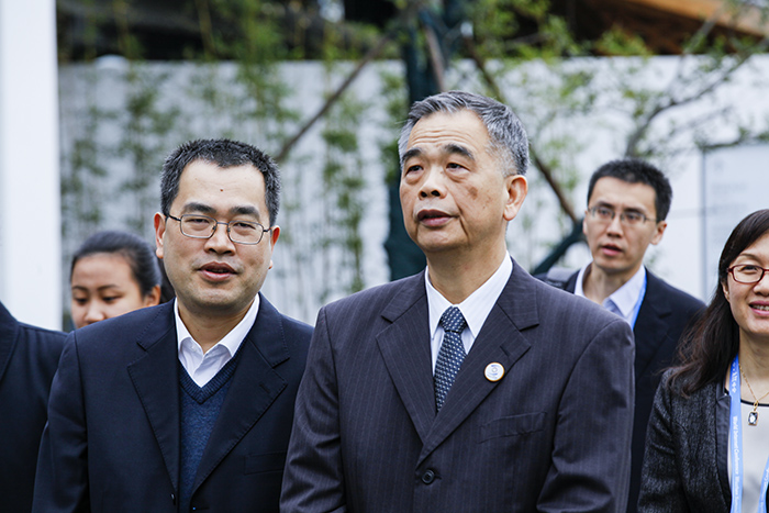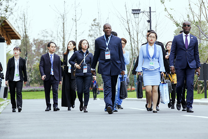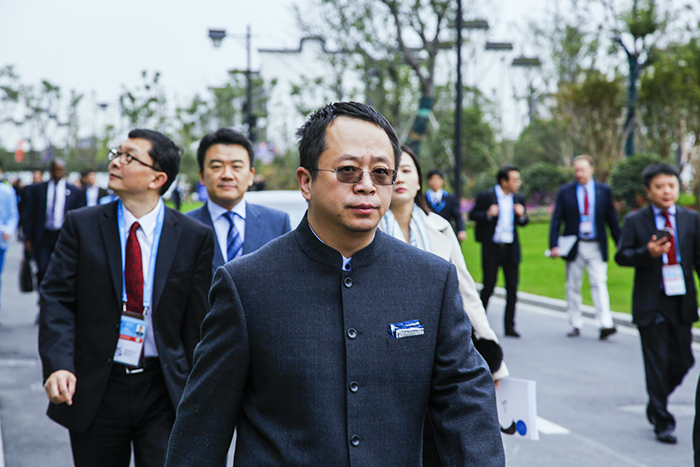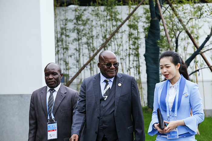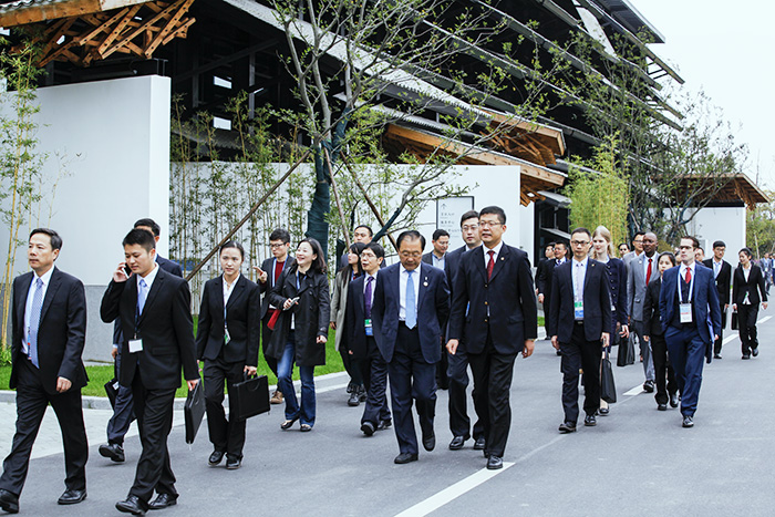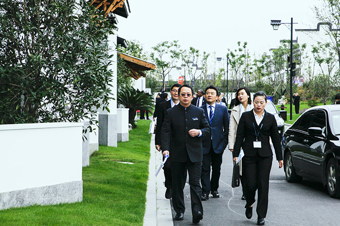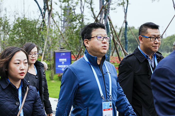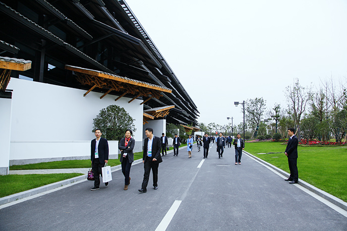 外国嘉宾边走边观赏会场外观