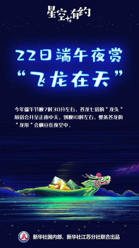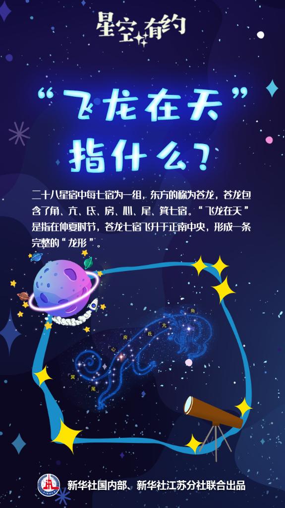 中科院天文科普专家介绍,22日端午节晚7时30分左右,苍龙七宿的“龙头”角宿会升至正南中天,到晚10时左右,整条苍龙的“龙形”会横亘在夜空中,公众可以观赏到“飞龙在天”天象。这条遨游在天上的“飞龙”是什么?“飞龙”是如何飞上天的?