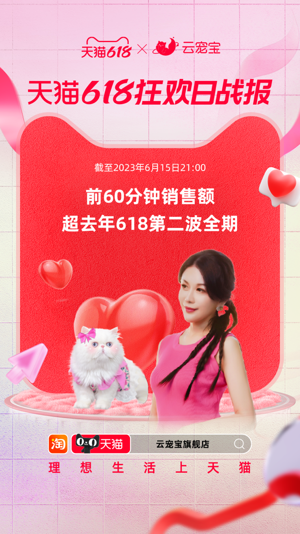 成熟创新的品牌理念、数字化定制化的养宠服务,使云宠宝很好的满足了消费者的需求,也让云宠宝在今年618中实现了销量和品牌价值的双丰收。天猫618狂欢日战报显示,在618狂欢日开启60分钟后,云宠宝品牌销售额已超去年618第二波全期,这一数据证明了云宠宝在口碑营销和销售实力的双赢,足以见得消费者对云宠宝产品的认可和喜爱。