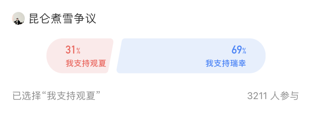 此声明一经发布立刻引发消费者热议。还有人在小红书发起投票“昆仑煮雪争议,你支持谁?”