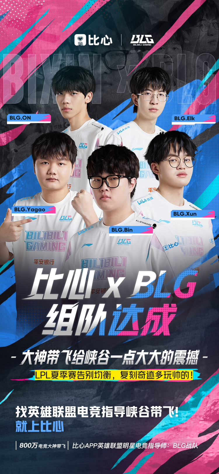 BLG电子竞技俱乐部英雄联盟队伍是是中国最顶级的英雄联盟职业战队之一,自战队组建以来,屡创佳绩,曾获得2023LPL春季赛亚军、2023英雄联盟季中冠军赛亚军等荣誉。近日,比心APP宣布与BLG电子竞技俱乐部正式达成合作。