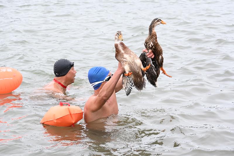 除了富有激情的龙舟竞渡,抢鸭子这一端午民俗也掀起现场高潮。上百只鸭子被抛向水面。只见划手或奋力击水,或跃入水中,对鸭子进行围堵拦截。整个过程妙趣横生,让岸上群众看得无不欢笑,浓厚的节日氛围洋溢江边。“看了龙舟赛,才算过端午。”市民李超向说,这是第一次在家门口看见全省这么多地的龙舟来比拼,端午氛围感超足。