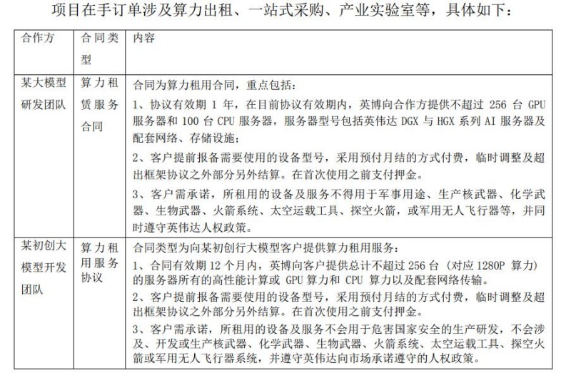 虽说如此,鸿博股份披露的在手订单的情况显示,目前只有两位合作方,均为大模型研发或开发团队,向合作方提供算力租赁服务,协议有效期均为1年。如果这是其目前的全部在手订单,那么合作方数量及合作期并不算很可观。