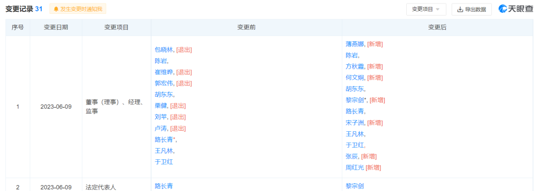 君康人寿除了董事长变更外,董事、监事、财务负责人共计6人也在同一天发生变更。天眼查信息显示,包晓林、崔维晔、郭宏伟、栗健、刘苹、卢涛退出,且上述6人均来自大股东“忠旺系”。新增董事分别为薄燕娜、方秋霞、宋子洲,何文炯任职监事会主席,张辰为监事,新的财务负责人为周红光。