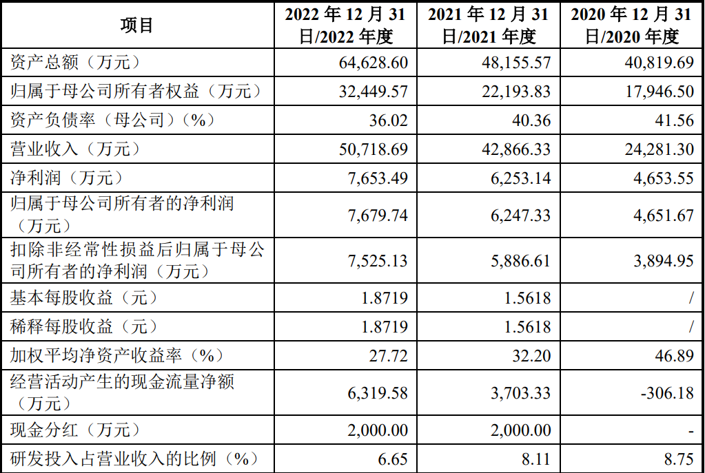 公司是一家专注于工业自动化领域产品研发、生产与销售的高新技术企业及国家级专精特新“小巨人"企业,产品主要包括自动化驱动产品、智能操控系统,以及管理系统软件。公司于2020年、2021年及2022年分别实现营业收入2.43亿元、4.29亿元及5.07亿元;分别实现归母净利润4651.67万元、6247.33万元及7679.74万元。