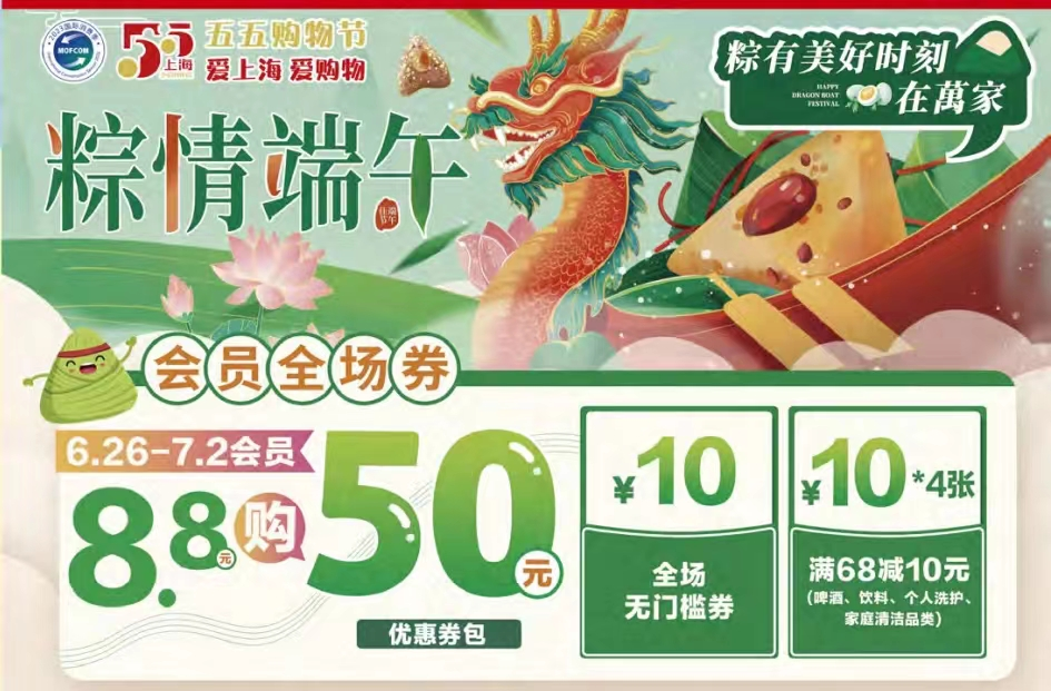 曹杨商城也推出了一系列赠礼活动,如在商城消费满55元,凭有效收银条至一楼活动区即可制作香囊一份;在商城消费满66元,凭有效收银条至一楼服务台即可领取粽子一份!(礼品数量有限,送完即止)百货零售和黄金饰品等也推出促销折扣,活动持续至6月25日。