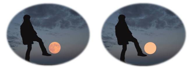 如果我此时问大家一个问题:这张图片里,是人离我近还是圆形物体离我近?如果是人来回答,那非常简单,我们都知道这个圆形物体是非常远的,而人不管是十公里还是二十公里,总是比月亮离我们近的。但是这样回答有个重要的前提,就是人其实已经把月亮的特征识别出来了,我们知道它是月亮。