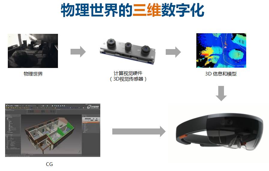 通过这两种方式产生的内容,最终将通过某种设备呈现给人。我认为,从物理世界拍摄而来的内容,加上CG产生的内容的结合,在将来的任何AR、VR、MR等设备里都是非常重要的。