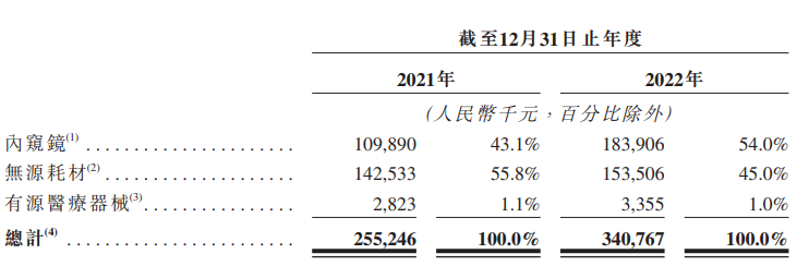 从公司成立至今,英诺伟共有36款产品获批。从产品分类来看,公司产品主要分为内窥镜和无源耗材两部分。截至2022年12月31日,英诺伟内窥镜实现营收1.84亿元,占公司营业收入比例为54%,无源耗材实现营收1.54亿元,占公司营业收入比例为45%。