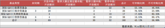 随着投资者海外资产配置需求的提升,QDII基金变得炙手可热,而外汇额度的紧缺也让不少基金收紧了申购通道。Wind数据统计显示,目前160只QDII基金中,仅剩69只基金开放申购(各份额分开统计),其余基金或是暂停了大额申购,或是处于封闭期,有的则直接关闭了申购通道。