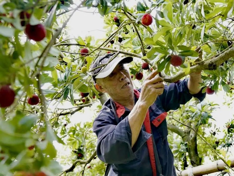 孙庆芳是台州市临海伍友果蔬专业合作社的一名果农,有30多年杨梅种植经验,他种植的100亩杨梅今年长势喜人,一棵树产量最高达300斤,他的儿子孙科则是这家果蔬合作社的负责人。