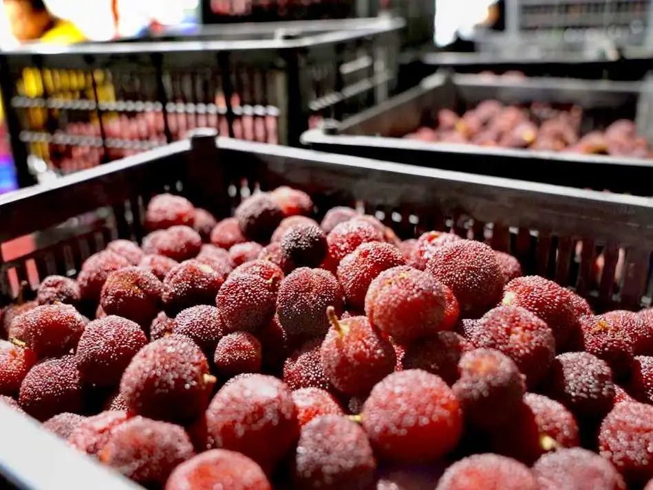 凌晨4点多,70岁的老人孙庆芳就拿着背篓上山采摘了,“和其他地方的杨梅不一样,我们这的东魁杨梅又大又甜,口感非常好”,他将颗颗杨梅小心翼翼的摘下,经过预冷、打包,准备运往叮咚买菜的分选中心。