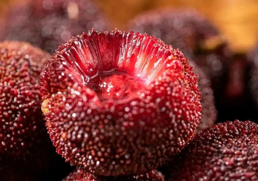 相较于硬丝、荸荠杨梅的硬脆口感,东魁杨梅最大的特点在于肉厚质软,果形较大,丝丝缕缕的果肉浓甜微酸,还有令人惊喜的“爆汁感”。
