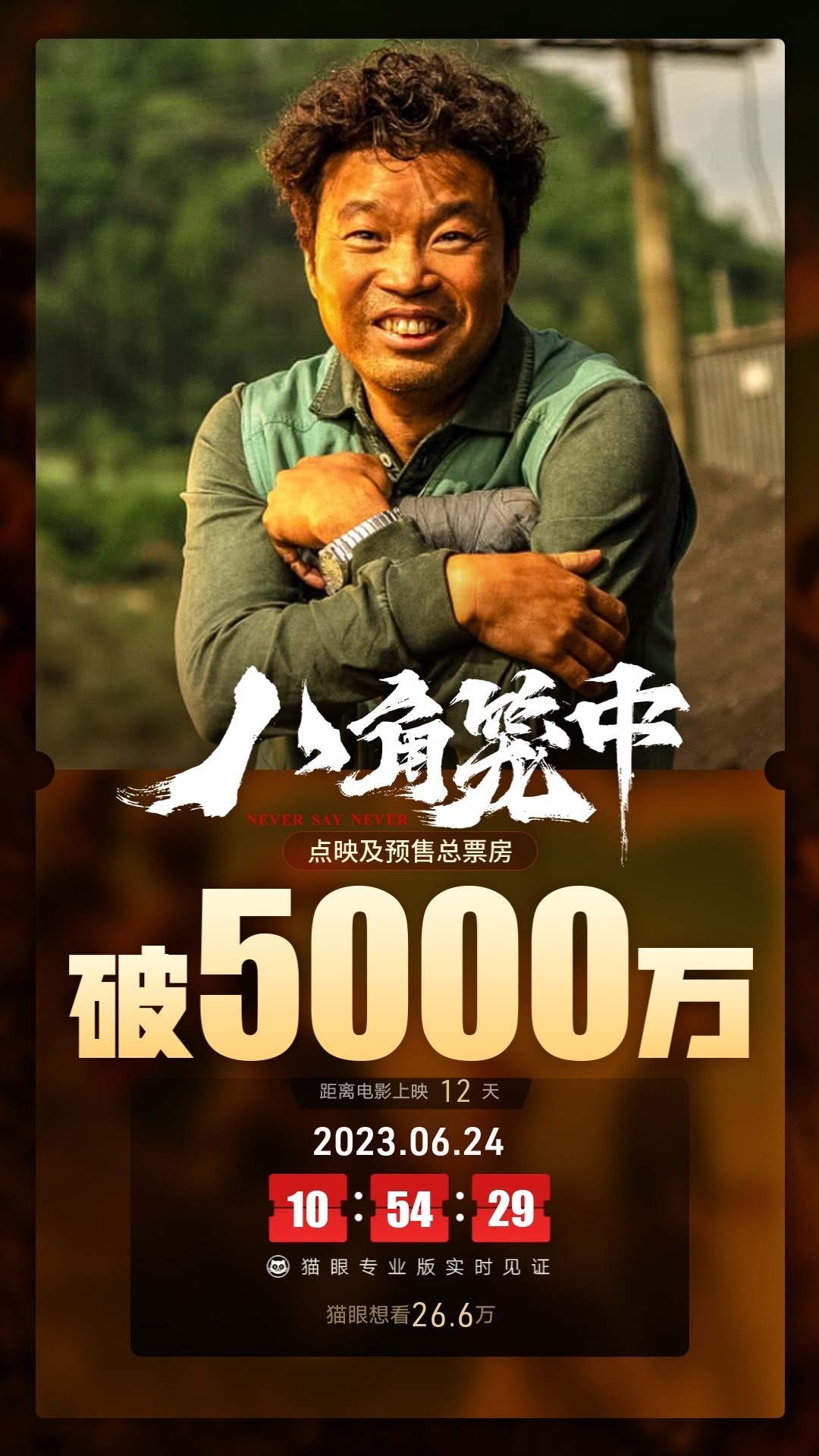 据@猫眼专业版 微博,猫眼专业版数据显示,电影《八角笼中》映前12天 ,点映及预售总票房破5000万。