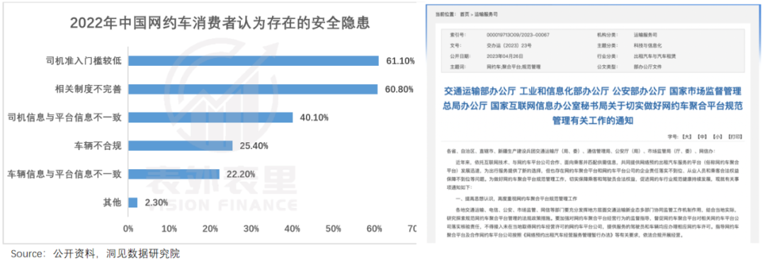 如艾媒咨询数据显示,2022年有61.1%的消费者认为网约车存在的安全隐患中,包括了司机准入门槛较低。