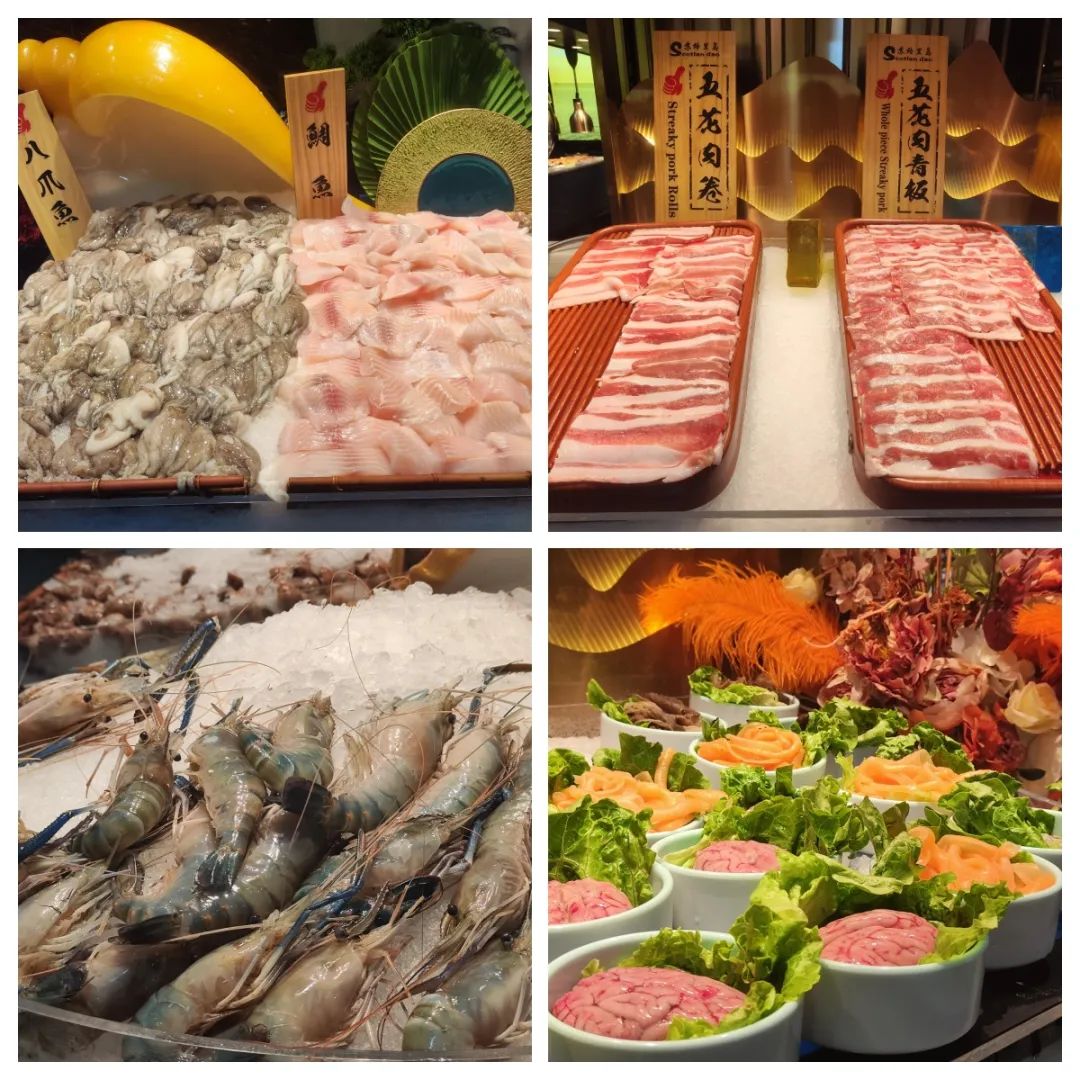 从店名“苏格里岛自助海鲜烤肉”可以看出,这是一家主打海鲜火锅和烤肉的自助餐厅,门店内的食材也多以火锅、烤肉类食材为主。