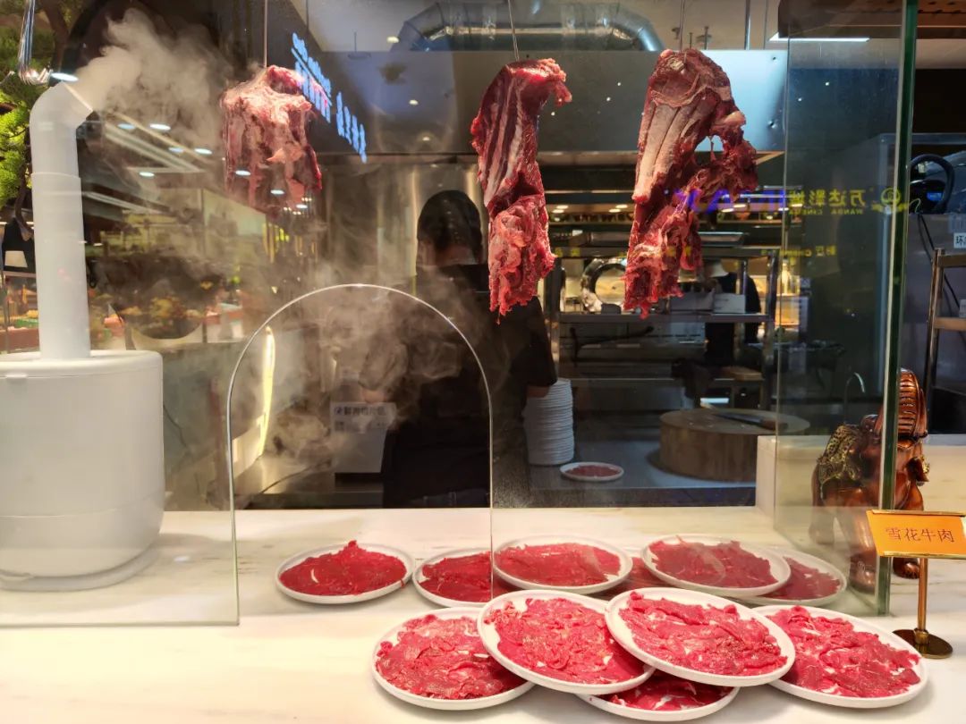 不仅吃法多样,苏格里岛的食材和产品也是琳琅满目。红餐网在现场粗略估算了下,苏格里岛门店食材、菜品种类不低于200种。