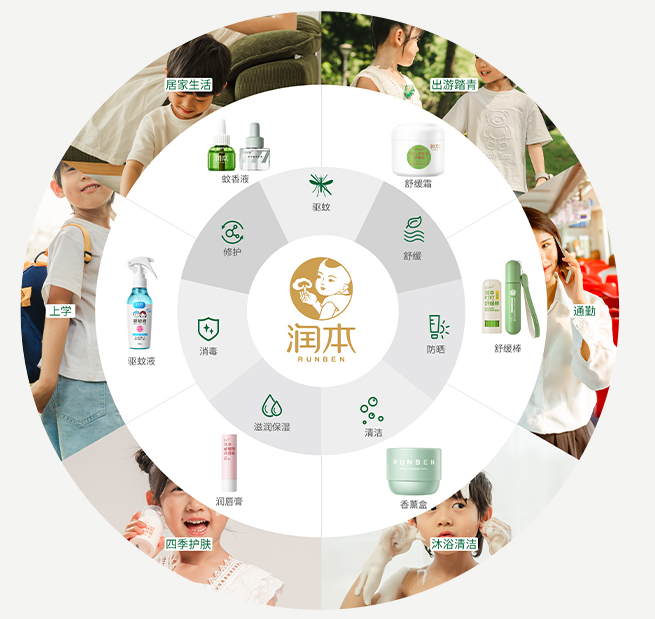 公司最早以驱蚊产品切入消费市场。2006年润本品牌诞生,而后不断丰富“润本”品牌的产品品类,拓展至个人护理市场。目前,除了驱蚊类产品,润本品牌产品还包含婴儿润唇膏、植物精油、香薰盒等多种品类,覆盖居家生活、出游踏青、四季护肤、沐浴清洁等多元场景。