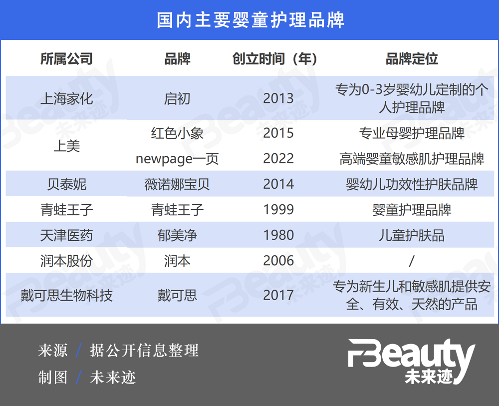 而从品牌看,婴童护理赛道上越来越热闹。《FBeauty未来迹》通过梳理国内婴童护理品牌发现,婴童护理的细分赛道越来越多、专业化趋势也越来越明显。