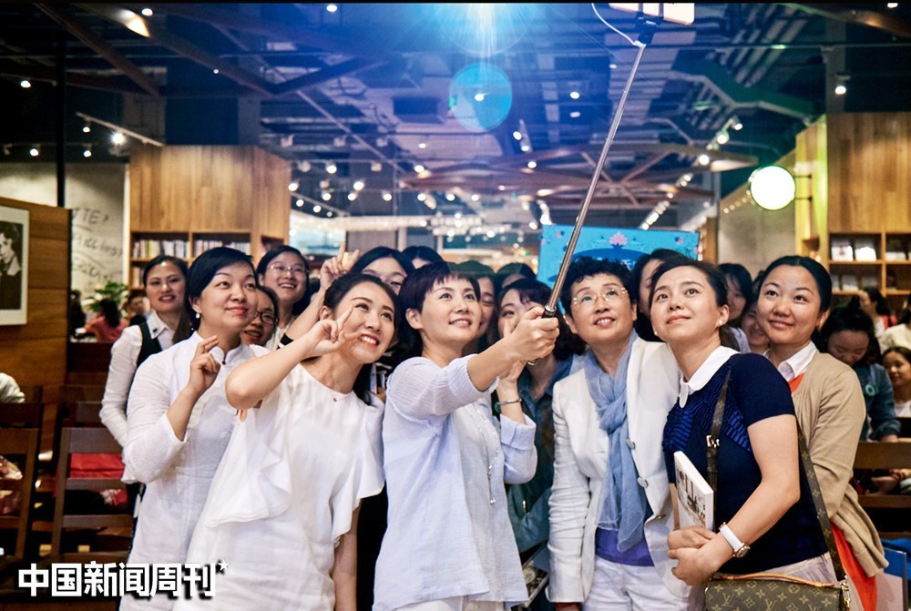 2016年6月,在四川省成都市的一次读者会后,李筱懿(自拍者)与粉丝合影。图|受访者提供