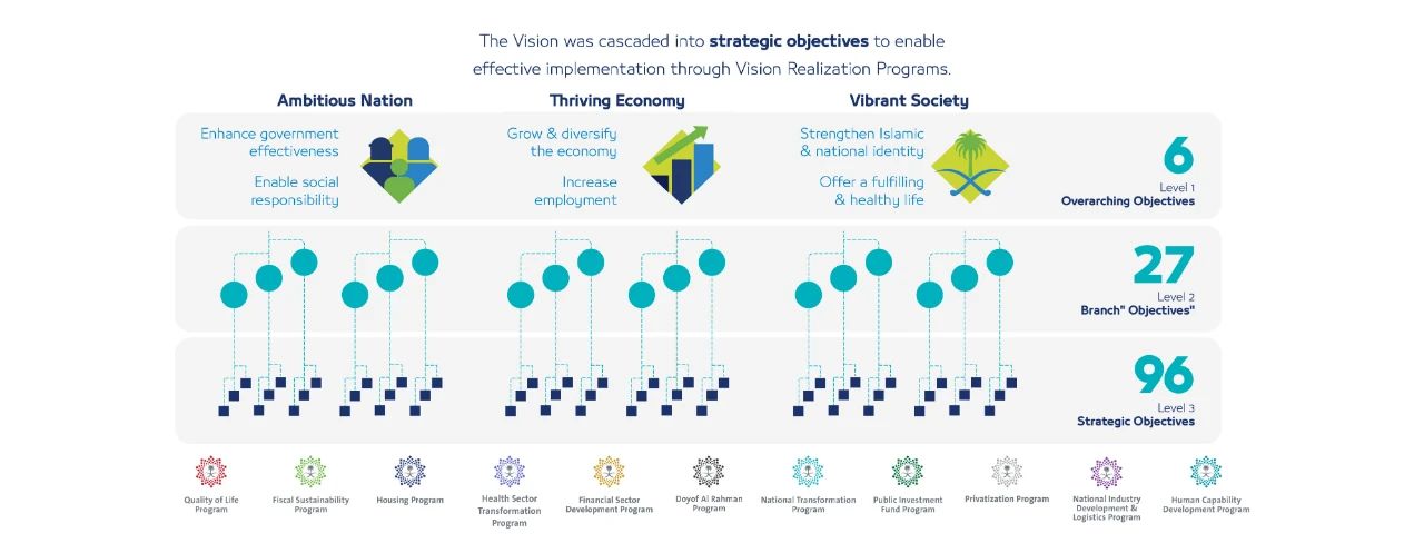 同年,沙特推出了「2030愿景」计划,该计划的三大主题:充满活力的社会 、繁荣的经济和雄心勃勃的国家。
