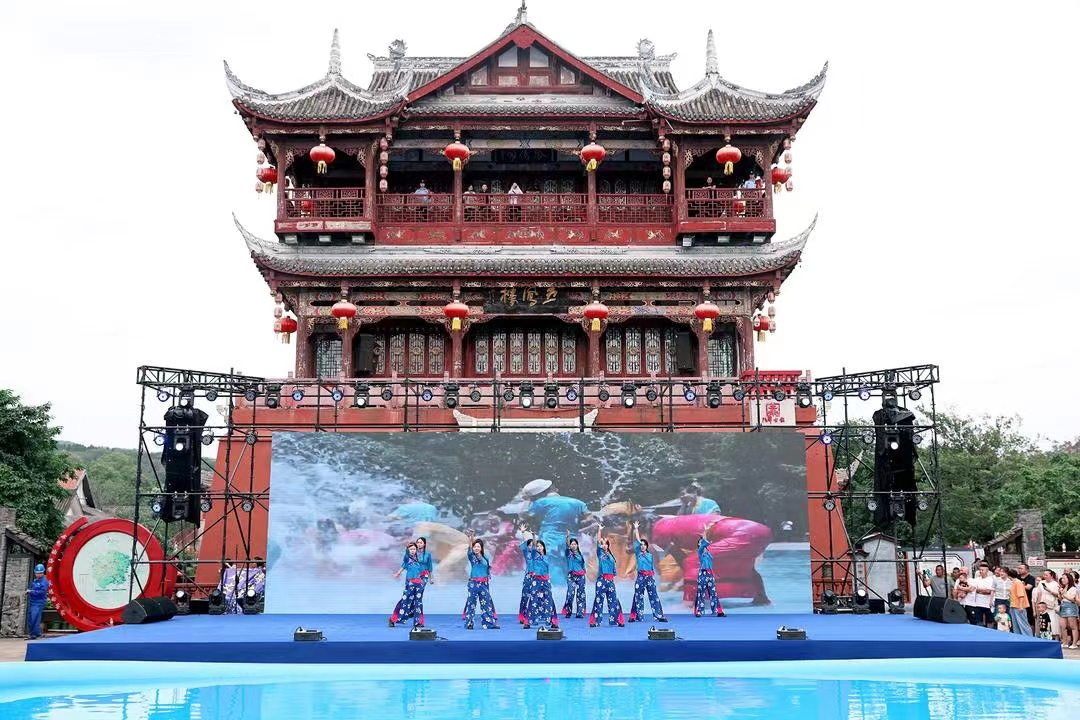 开幕式现场悠扬欢快的歌曲、客家快闪舞蹈点燃了独具洛带风情的水龙季狂欢气氛。活动现场,市民游客与现场来宾共同体验清凉消夏戏水互动。