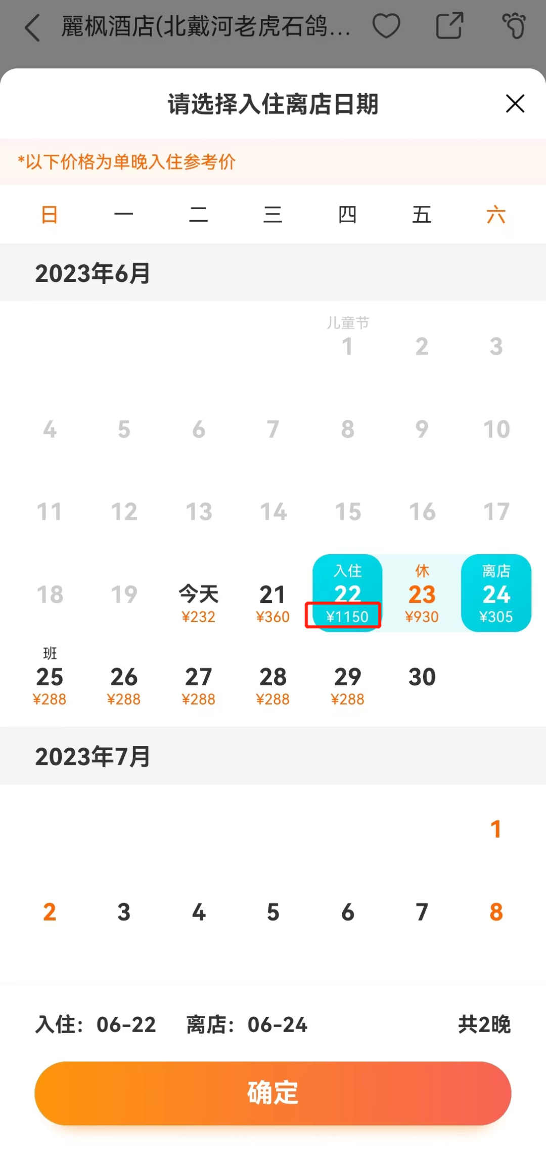 比起人山人海扎堆出游,“五一”期间最让游客记忆犹新的事,无疑是酒店的“背刺”。今年4月28日,《IT时报》曾在《五一出游,“酒店刺客”有多猛》中报道假期中的酒店涨价潮,此次,记者再次查看曾被曝光涨价591%的秦皇岛麗枫酒店北戴河老虎石店。携程、去哪儿、飞猪等平台显示,该酒店仍大幅涨价,仅涨幅略低于“五一”假期期间,以去哪儿上的价格为例,麗枫酒店北戴河老虎石店6月22日价格为1150元,平日价格为288元,涨幅达到300%。