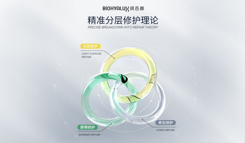 多年来,润百颜不仅是在玻尿酸领域持续创新,也积极发挥优势,在以消费者需求为核心的基础上,用科技赋能,针对不同消费者的肌肤问题,提出了属于润百颜的玻尿酸特色解法--基于精准分层修护理念的三大修护模型。