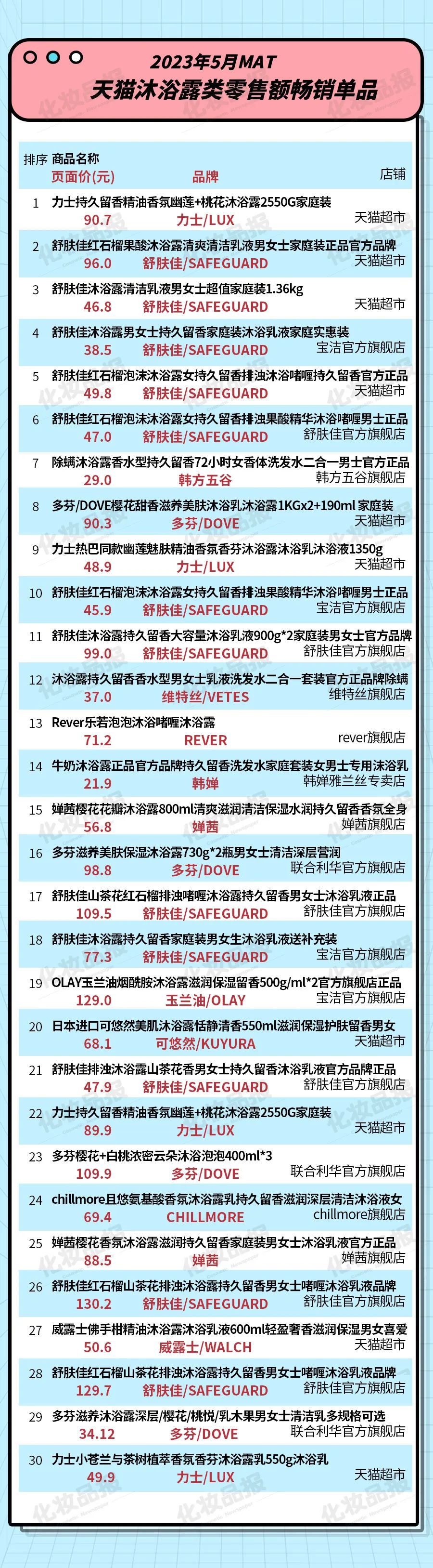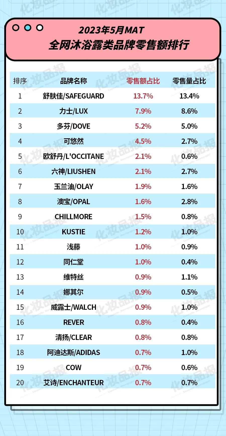 01 舒肤佳霸榜,国货反超外资品牌,占比过半