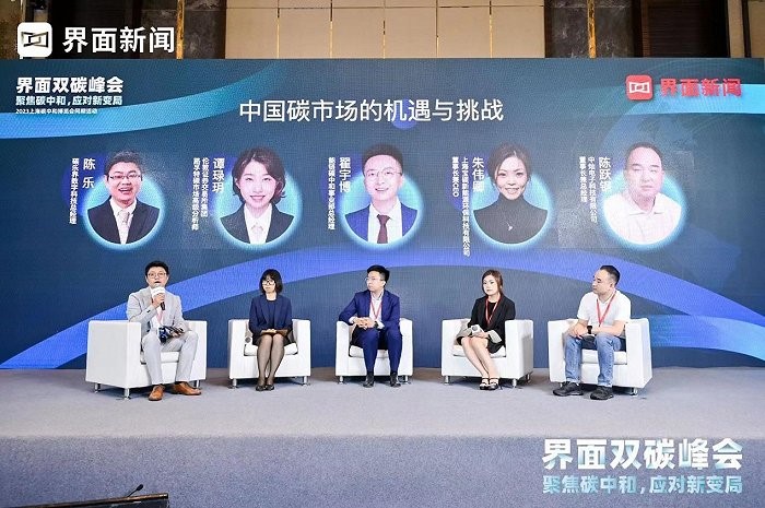 6月12日,2023【界面双碳峰会】在国家会展中心上海洲际酒店圆满落幕。碳乐界数字科技总经理陈乐先生,伦敦证券交易所集团路孚特碳市场高级分析师谭琭玥女士,能链碳中和事业部总经理翟宇博先生,上海宝碳新能源环保科技有限公司董事长兼CEO朱伟卿女士和中灿电子科技有限公司董事长兼总经理陈跃钢 先生围绕“中国碳市场的机遇与挑战”这一话题,展开讨论。