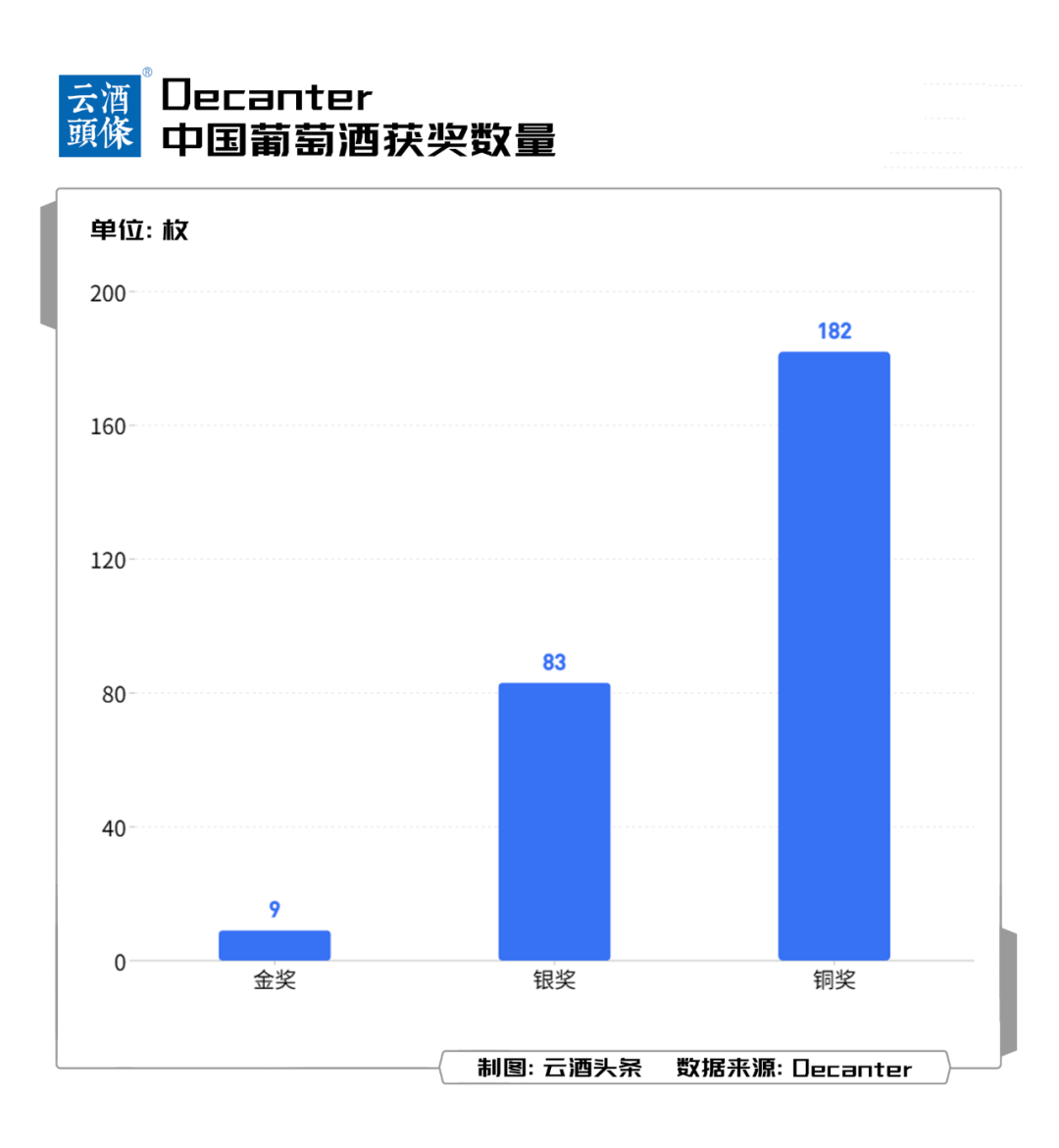 这当中,共有9款中国葡萄酒在2023年DWWA中夺得了金奖,83款获得银奖,182款获得铜奖。分产区来看,宁夏产区共获得110枚奖牌,包括2枚金奖和36枚银奖,获奖总数位居第一。此外,新疆产区、山东产区、河北产区、东北产区辽宁、吉林均榜上有名。